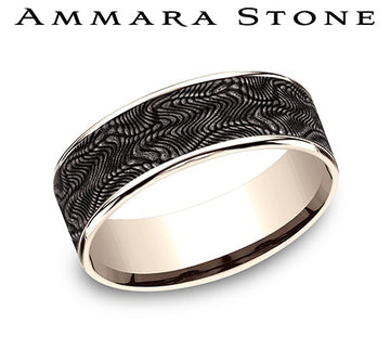 Ammara Stone 14 Karat Rose Gold and Black Tantalum 7.5 mm Snakeskin Center Wedding Band Size 10