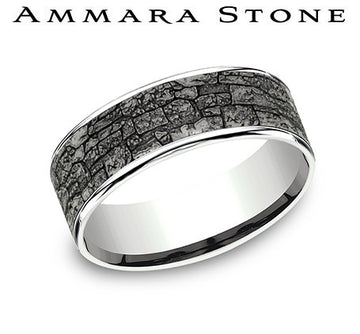 Ammara Stone White Gold and Gray Tantalum Stone Wall Center Wedding Band