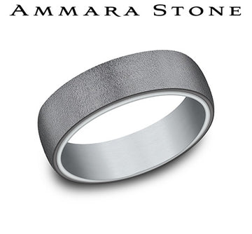 Ammara Stone White Gold and Grey Tantalum Wire Brush Wedding Band