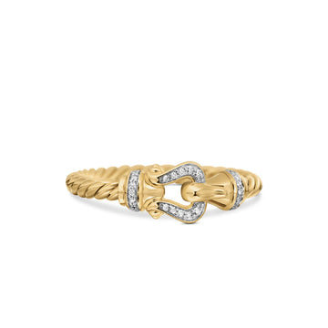 David Yurman Yellow Gold Petite Buckle Ring with Diamonds