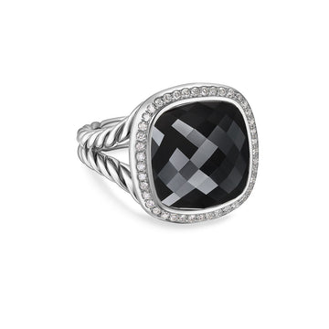 David Yurman Sterling Silver Albion Black Onyx Ring with Diamonds