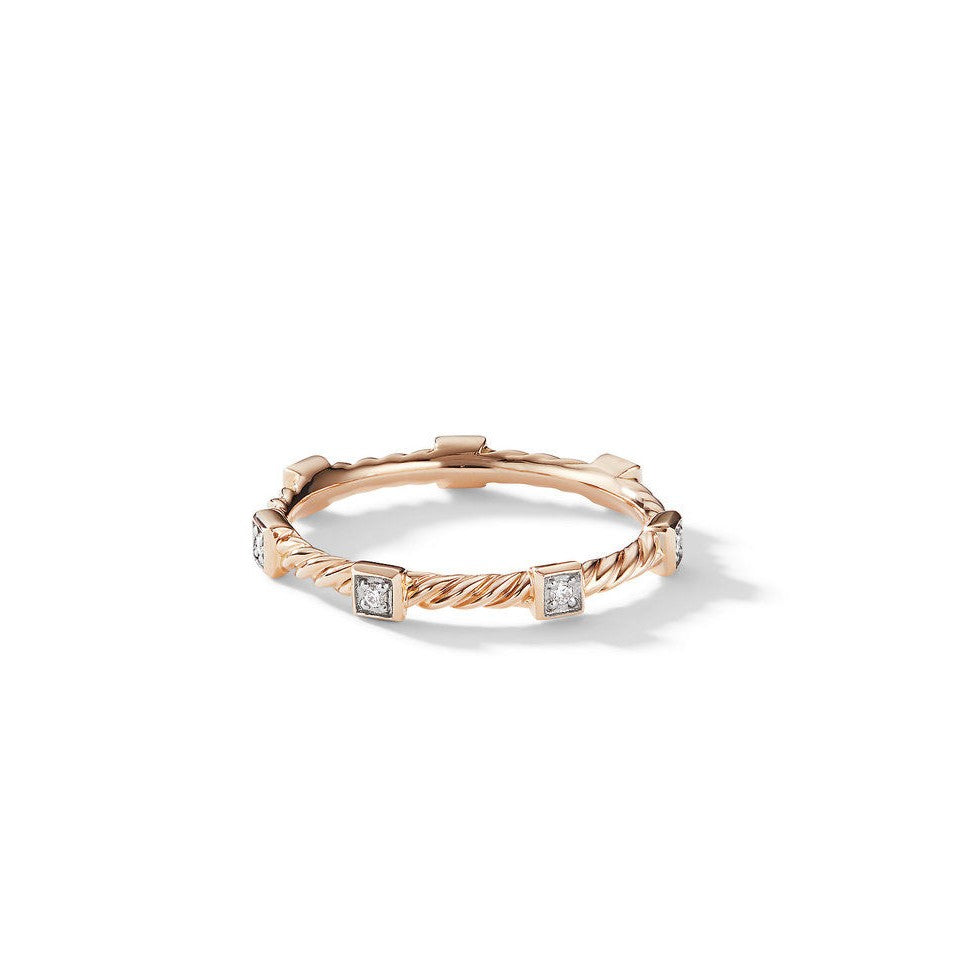 David Yurman Rose Gold Cable Stack Band Ring with Diamonds