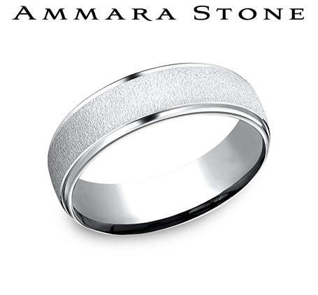 Ammara Stone White Gold Wire Brush Center Wedding Band