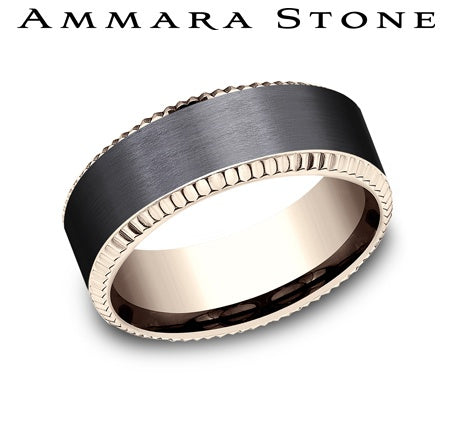 Ammara Stone Rose Gold and Black Titanium Twilll Center Wedding Band