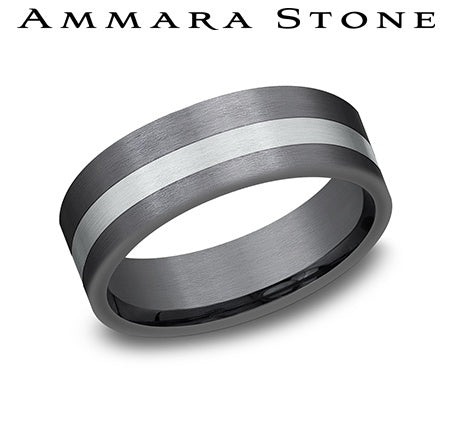 Ammara Stone White Gold and Grey Tantalum Wire Brush Wedding Band