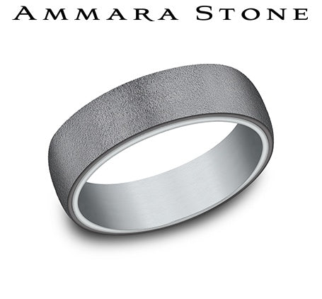 Ammara Stone White Gold and Grey Tantalum Brushed Wedding Band