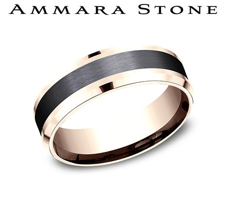 Ammara Stone Rose Gold and Black Titanium Bevel Edge Satin Finish Wedding Band