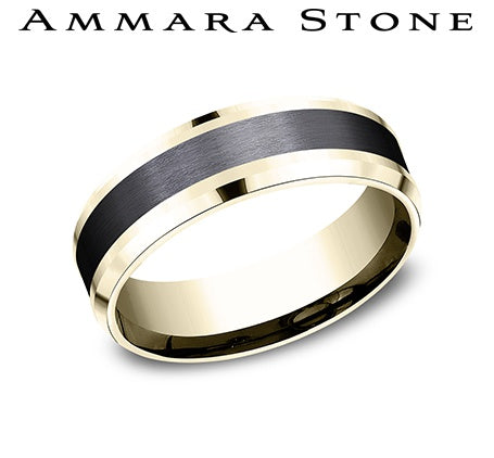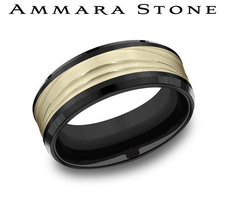 Ammara Stone Yellow Gold and Black Titanium Bevel Edge Satin Finish Wedding Band