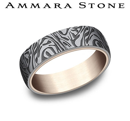Ammara Stone Rose Gold and Grey Tantalum Mokume Pattern Wedding Band