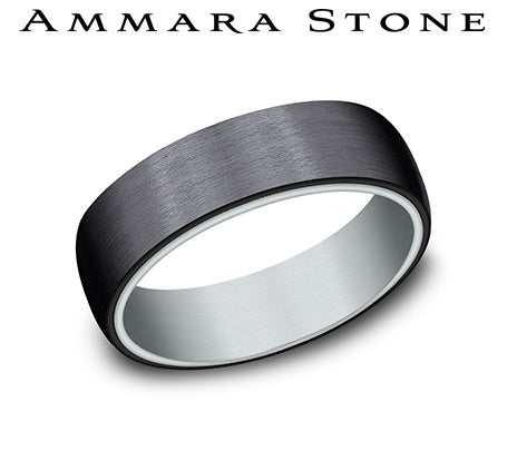 Ammara Stone White Gold and Black Titanium Satin Finish Wedding Band