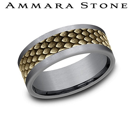 Ammara Stone Yellow Gold and Grey Tantalum Dragon Scale Center Wedding Band