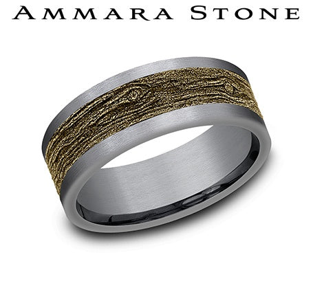 Ammara Stone Yellow Gold and Black Tantalum Wood Design Center Wedding Band