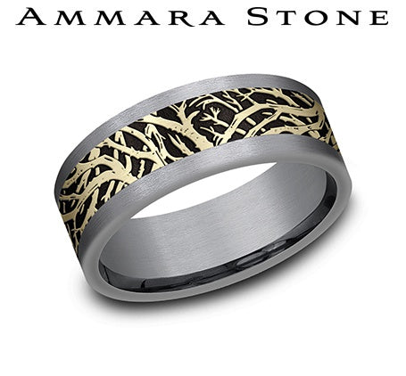 Ammara Stone Yellow Gold and Gray Tantalum Enchanted Forest Center Wedding Band