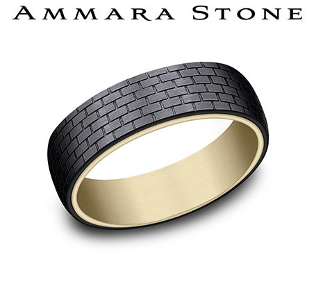 Ammara Stone Yellow Gold and Black Titanium Brick Design Wedding Band
