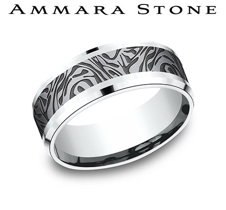 Ammara Stone White Gold and Grey Tantalum Bevel Edge Mokume Center Wedding Band