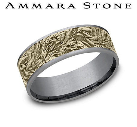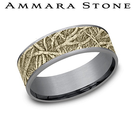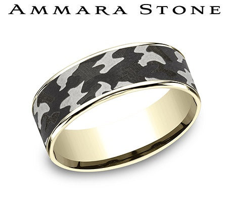 Ammara Stone Yellow Gold and Grey Tantalum Camo Center Wedding Band