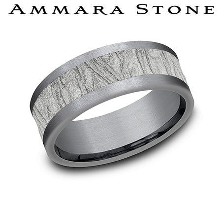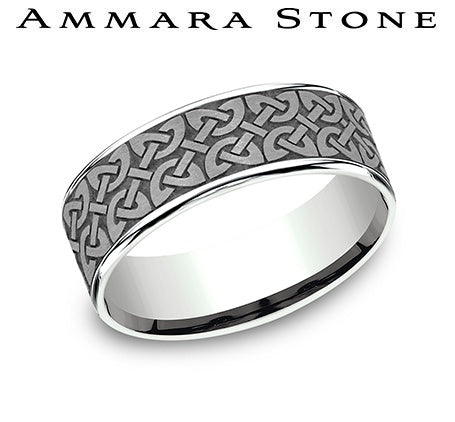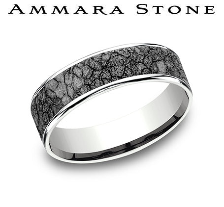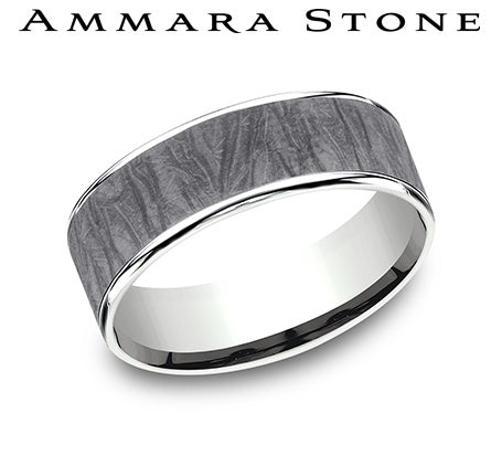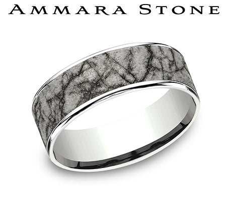 Ammara Stone White Gold and Gray Tantalum Marble Design Center Wedding Band