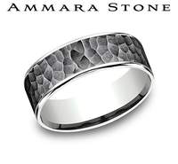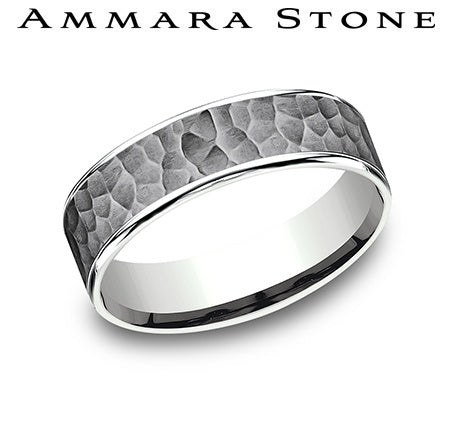 Ammara Stone White Gold and Grey Tantalum Satin Hammered Center Wedding Band