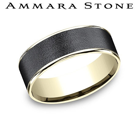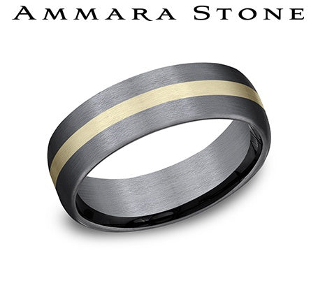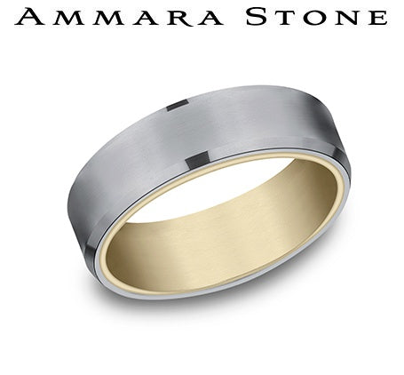 Ammara Stone Yellow Gold and Gray Tantalum Bevel Edge Satin Finish Wedding Band