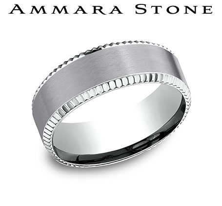 Ammara Stone White Gold and Grey Tantalum Beveled Coin Edge and Satin Finish Wedding Band