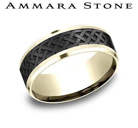 Ammara Stone Yellow Gold and Black Titanium Celtic Love Knot Center Wedding Band