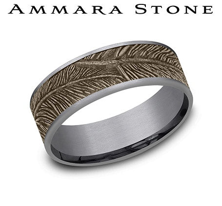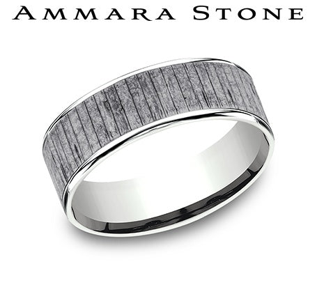 Ammara Stone White Gold and Gray Tantalum Split Wood Grain Center Wedding Band