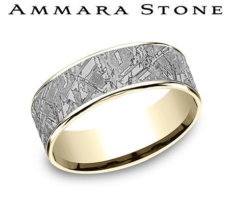 Ammara Stone Yellow Gold and Gray Tantalum Faux Meteorite Center Wedding Band