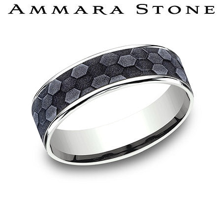 Ammara Stone White Gold and Gray Tantalum Honey Comb Center Wedding Band