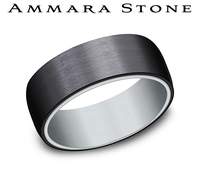 Ammara Stone White Gold and Black Titanium Satin Finish Wedding Band