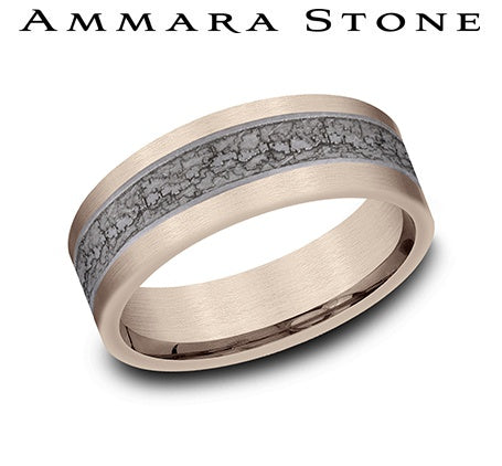 Ammara Stone Rose Gold and Gray Tantalum Raised Fault Line Center Wedding Band