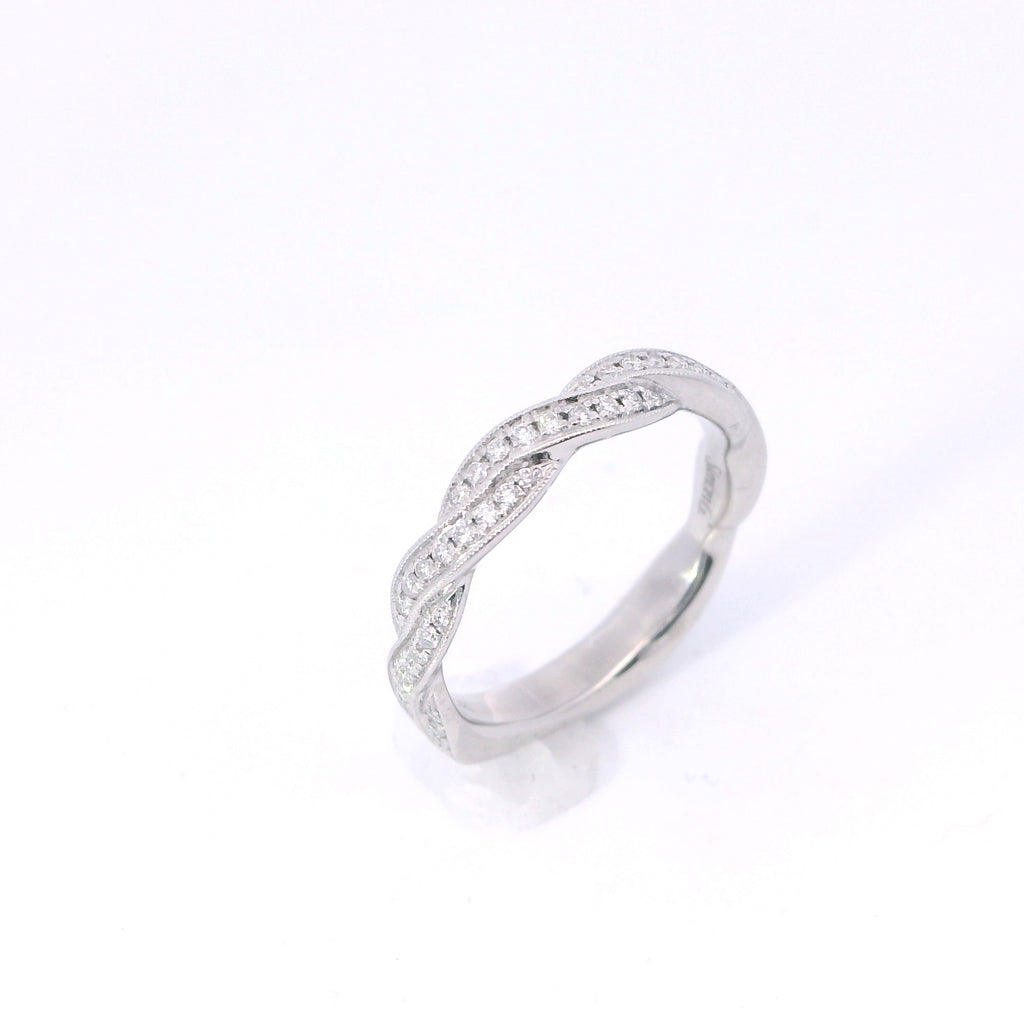 Estate Simon G White Gold Twist Milgrain Diamond Euro Shank Ring