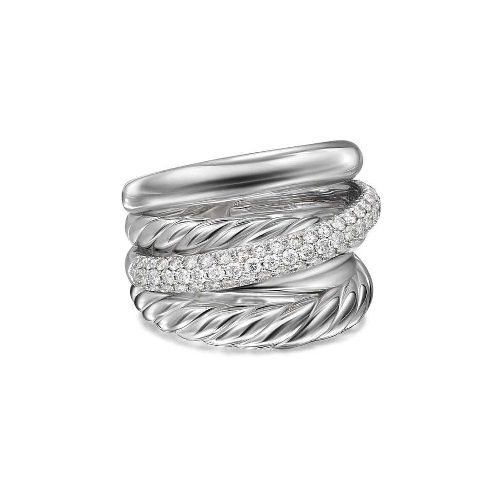 David Yurman Sterling Silver Bold Crossover 5-Row Ring with Diamonds