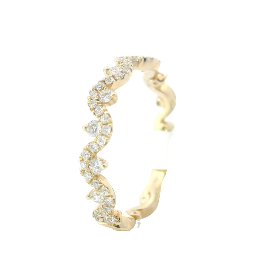 Yellow Gold Curve and Dot Diamond Wedding Band