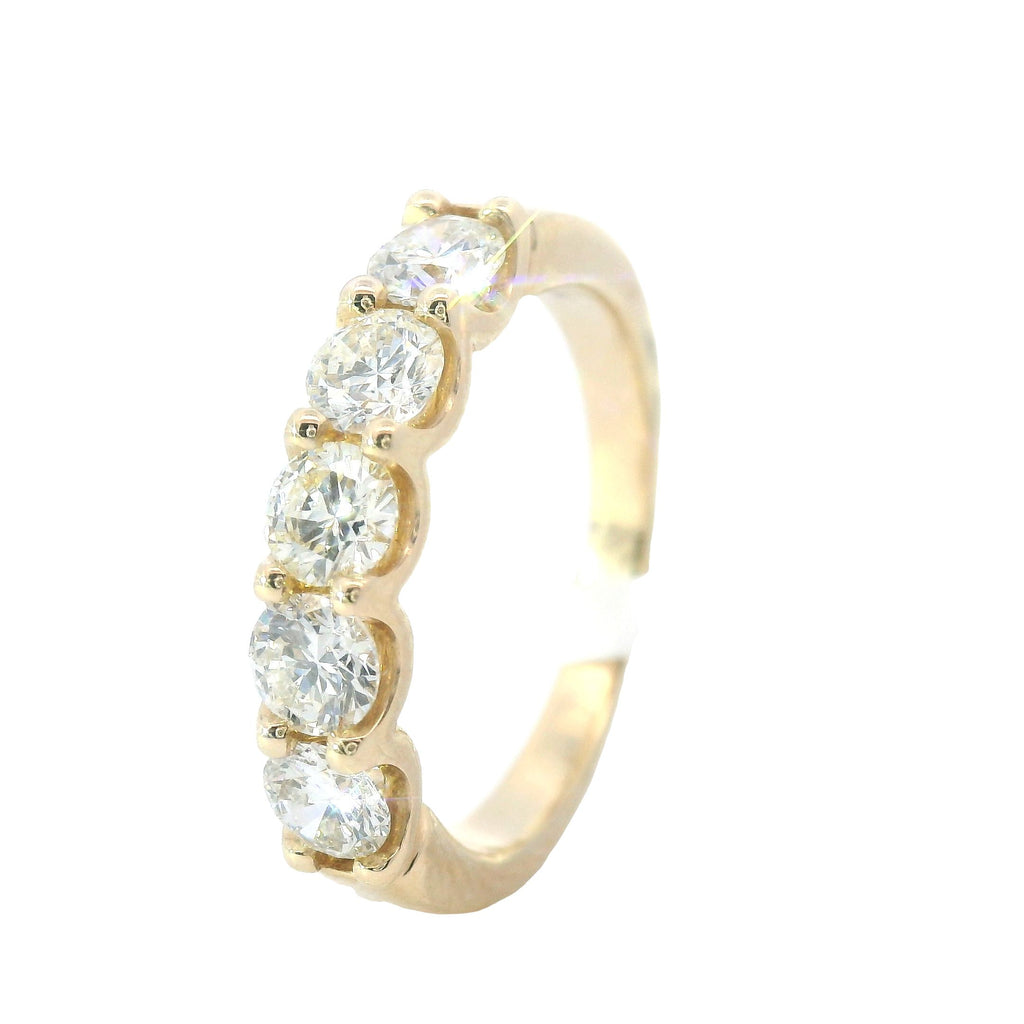 Yellow Gold 2 Carat Five Diamond Wedding Band