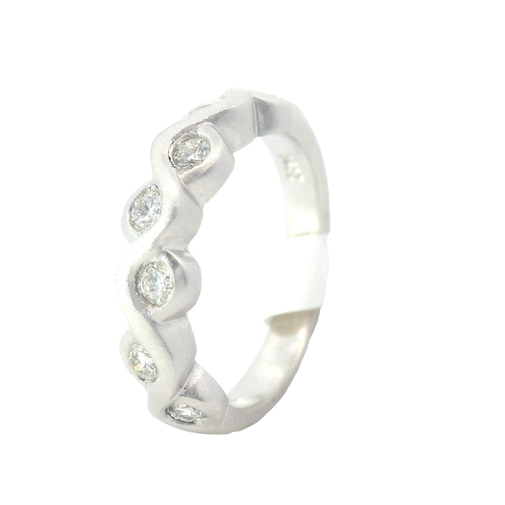 White Gold Satin Infinity Bezel Diamond Wedding Band