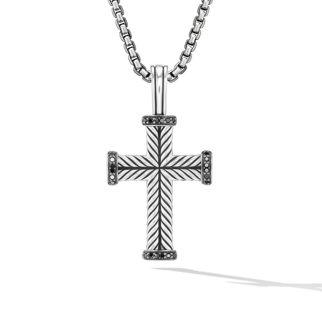 David Yurman Sterling Silver Chevron Cross Enhancer with Black Diamonds