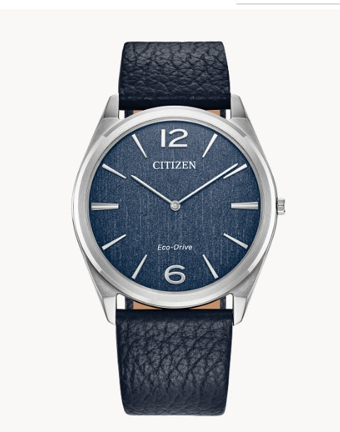 Citizen 38.4 mm Stainless Steel and Leather Suratto Blue Dial Eco-Drive Watch
