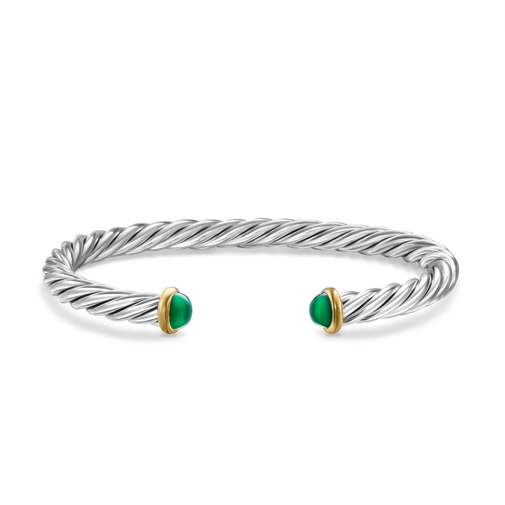 David Yurman Sterling Silver and Yellow Gold Cable Cuff Green Onyx Bracelet