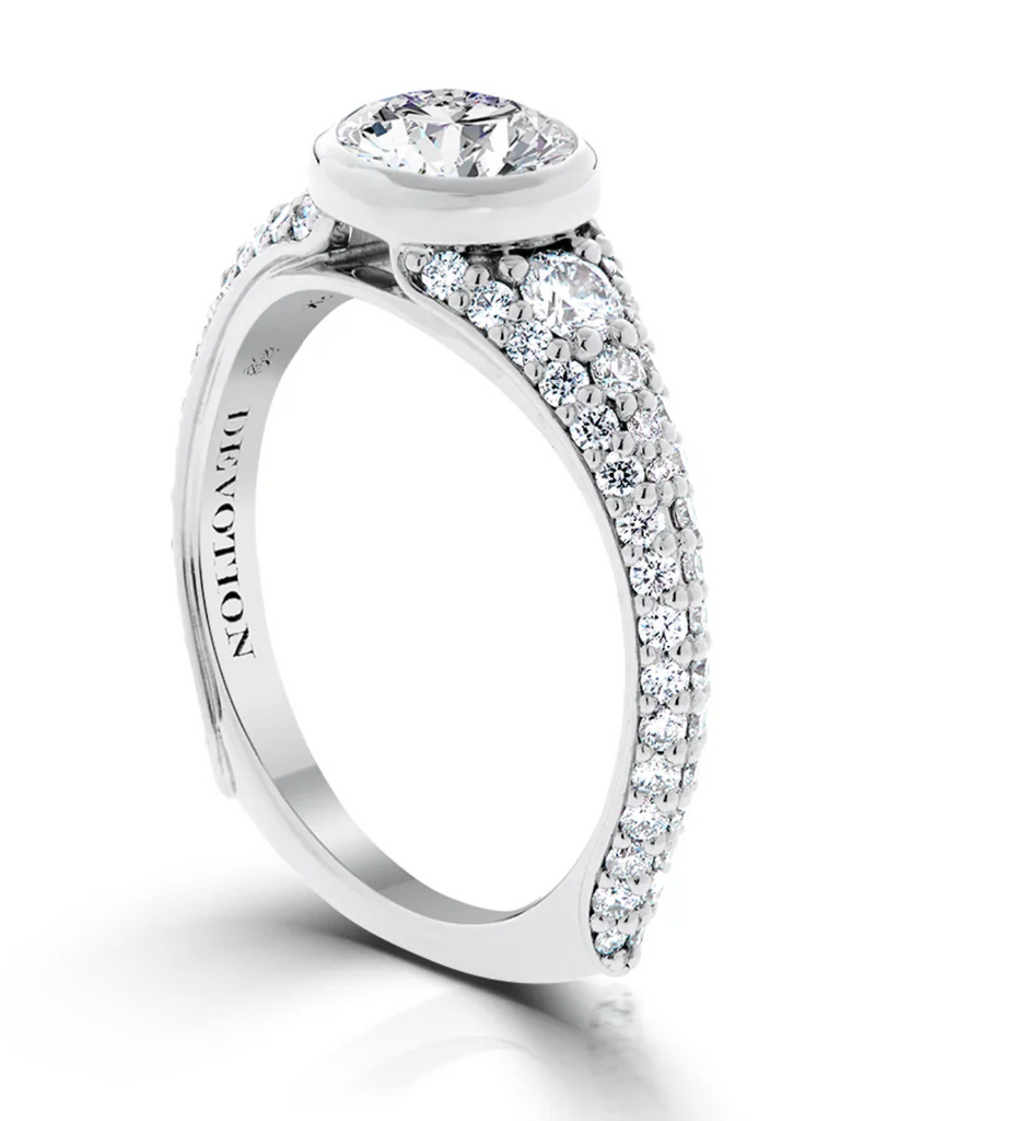 Devotion 18 Karat White Gold Simone Diamond Bezel Engagement Ring Mounting with 0.72 Total Carat Weight of Diamonds