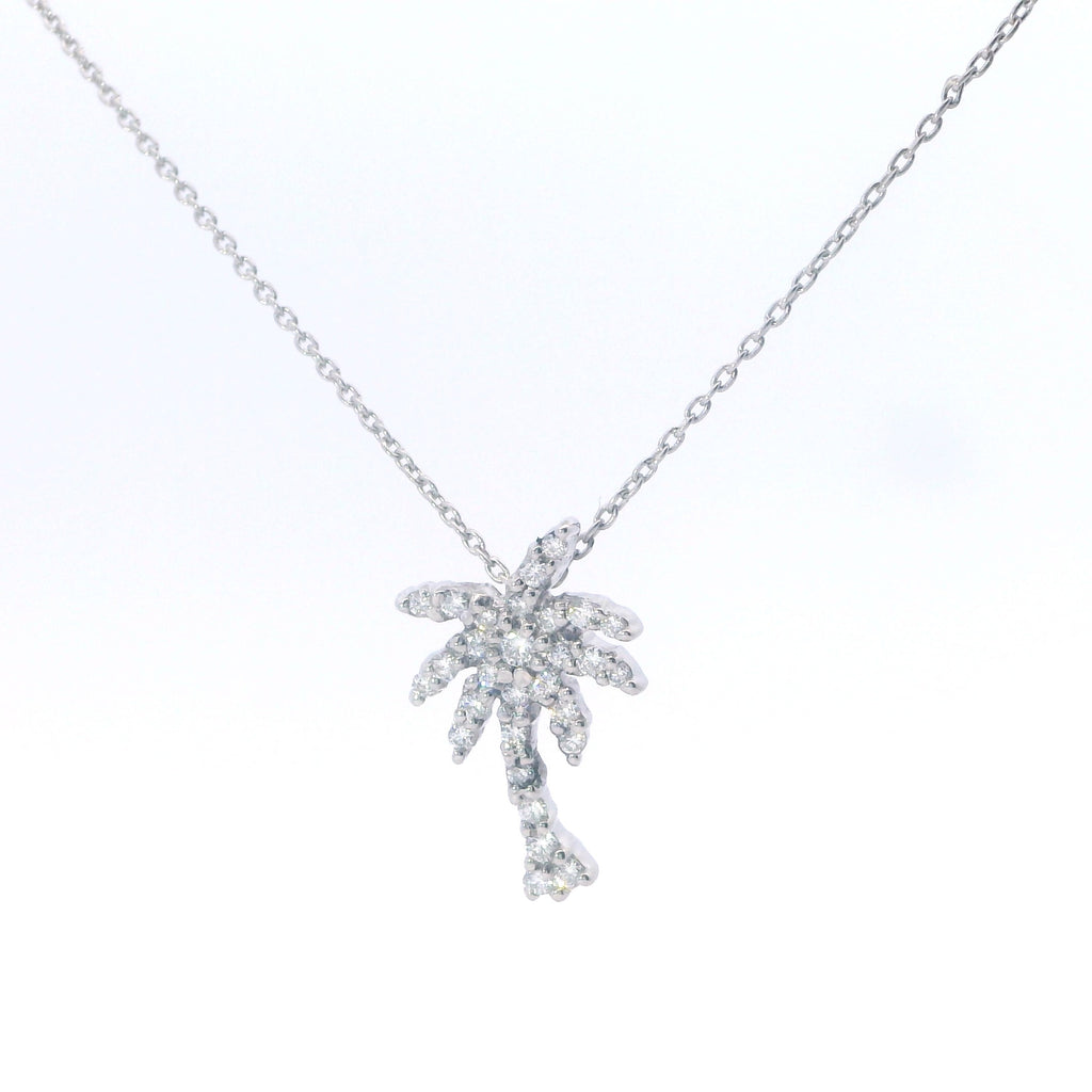 Estate Roberto Coin White Gold Tiny Treasures Diamond Palm Tree Pendant Necklace