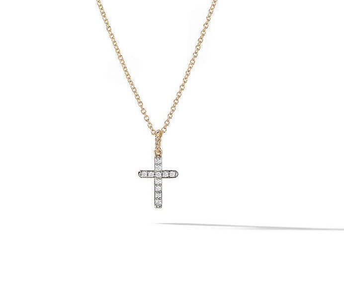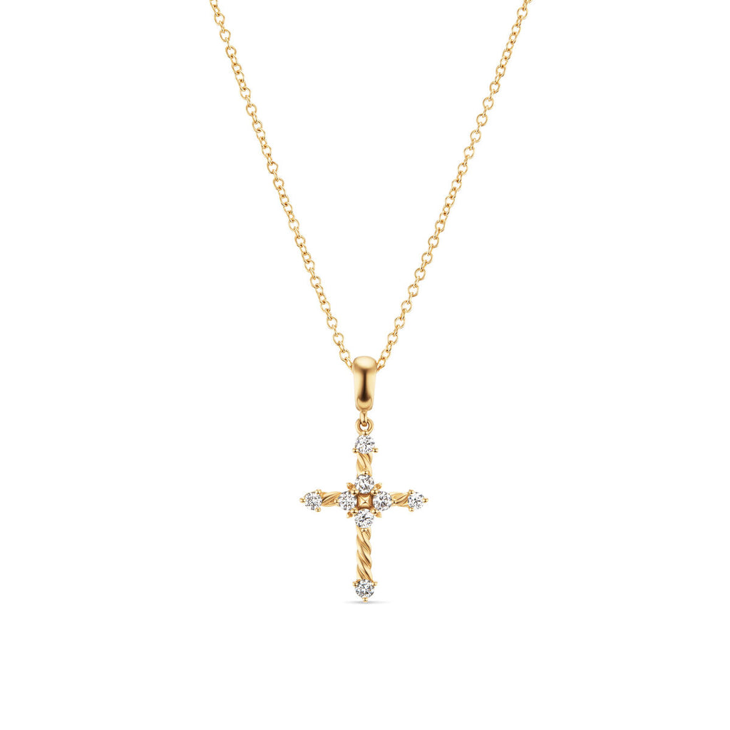 David Yurman Yellow Gold Small Cross Cable Collectible Necklace with Diamonds