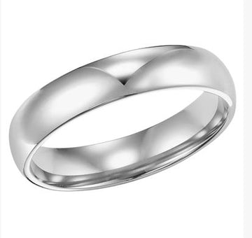 This 14 karat white gold wedding band features a timeless 4 mm low dome design for a sleek and elegant look. Crafted with a comfort fit, it ensures a smooth and easy wear for everyday use. The band shown is a size 6 but can be ordered in any size sized up or down 2 sizes in house to ensure the perfect fit. A classic choice, this white gold band is perfect for symbolizing everlasting love. Additionally, the band is engravable, allowing for a personalized touch.
