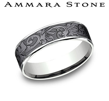 Ammara Stone 14 Karat White Gold and Gray Tantalum 6.5 mm Vintage Script Center Wedding Band Size 10
