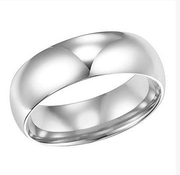 This 14 karat white gold wedding band features a timeless 7 mm low dome design for a sleek and elegant look. Crafted with a comfort fit, it ensures a smooth and easy wear for everyday use. The band shown is a size 12 but can be ordered in any size sized up or down 2 sizes in house to ensure the perfect fit. A classic choice, this white gold band is perfect for symbolizing everlasting love. Additionally, the band is engravable, allowing for a personalized touch.