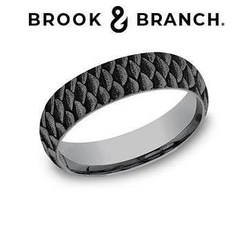 Brook and Branch Grey Tantalum Comfort Fit 6 mm Domed Fish Scale Wedding Band