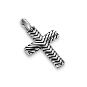 This David Yurman Sterling Silver 36 mm Chevron Cross Enhancer is perfect for adding to any chain for a bold, fresh look!