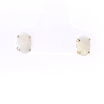 Estate 14 Karat Yellow Gold Oval Opal Stud Earrings with 6x4 mm Opals. This piece will be sold as is.