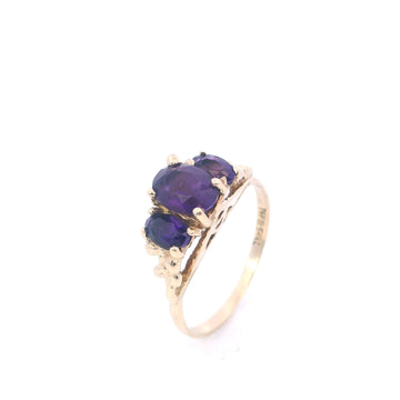 Estate Yellow Gold Three Stone Amethyst Ring