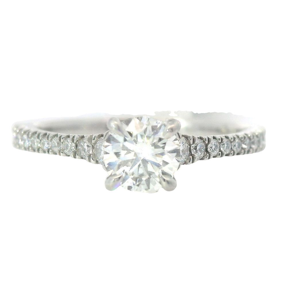 Platinum Forevermark Icon Mounting and Round Diamond Center Engagement Ring with a 0.51 Carat G SI1 Center Diamond and 0.23 Total Carat Weight of Side Diamonds