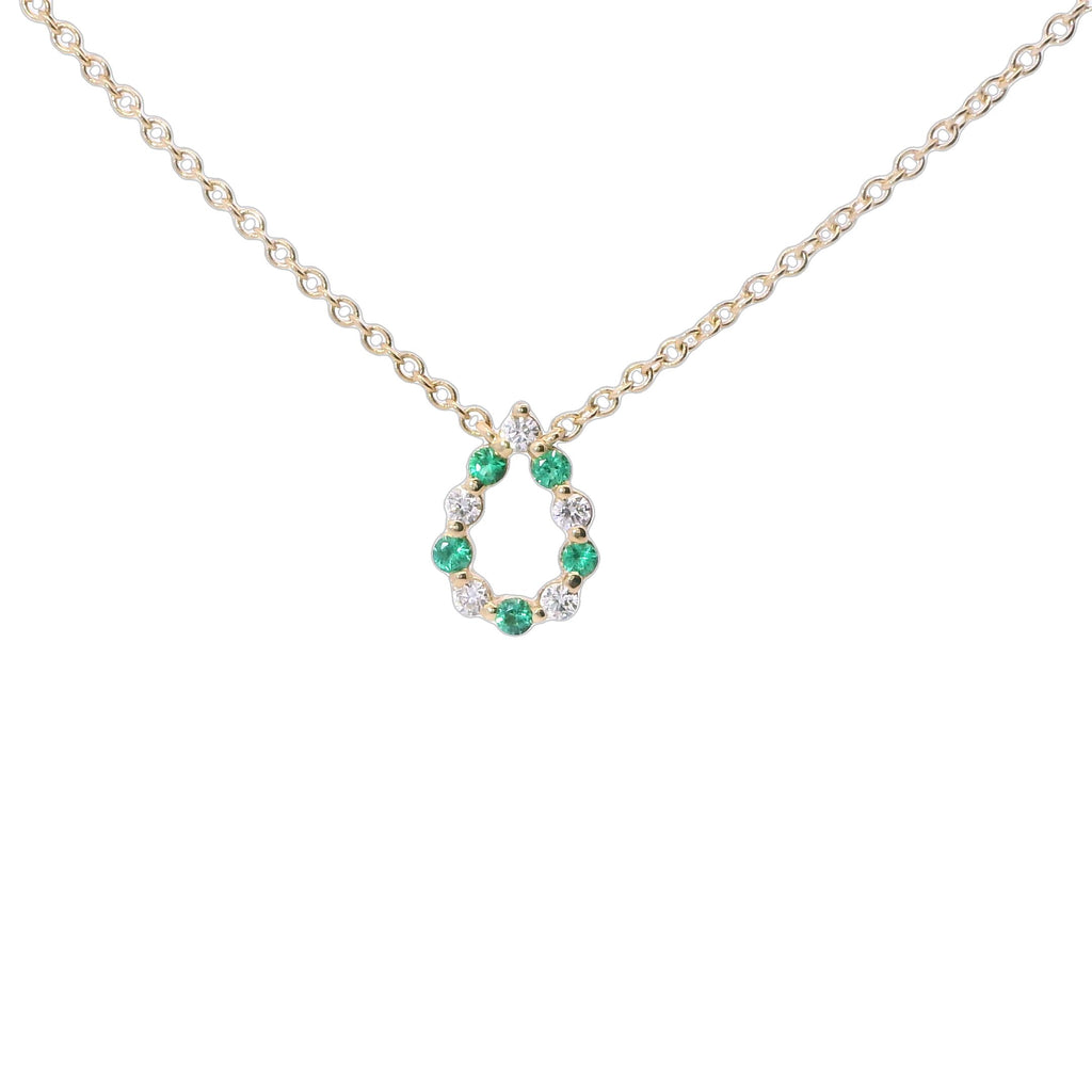 This enchanting teardrop pendant captures the perfect balance of sparkle and color! Crafted in lustrous 14 karat yellow gold, it features a stunning emerald center complemented by 0.08 carats of brilliant diamonds and 0.10 carats of rich green emeralds. The station setting keeps every stone exactly where it belongs—no wandering gems here. A playful pop of green elegance that stays put and turns heads.